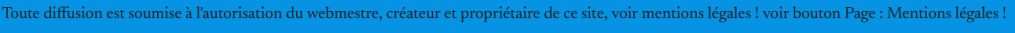 La reproduction pour un usage privé est autorisée. Toute diffusion est soumise à l’autorisation du webmestre, créateur et propriétaire de ce site, voir mentions légales !