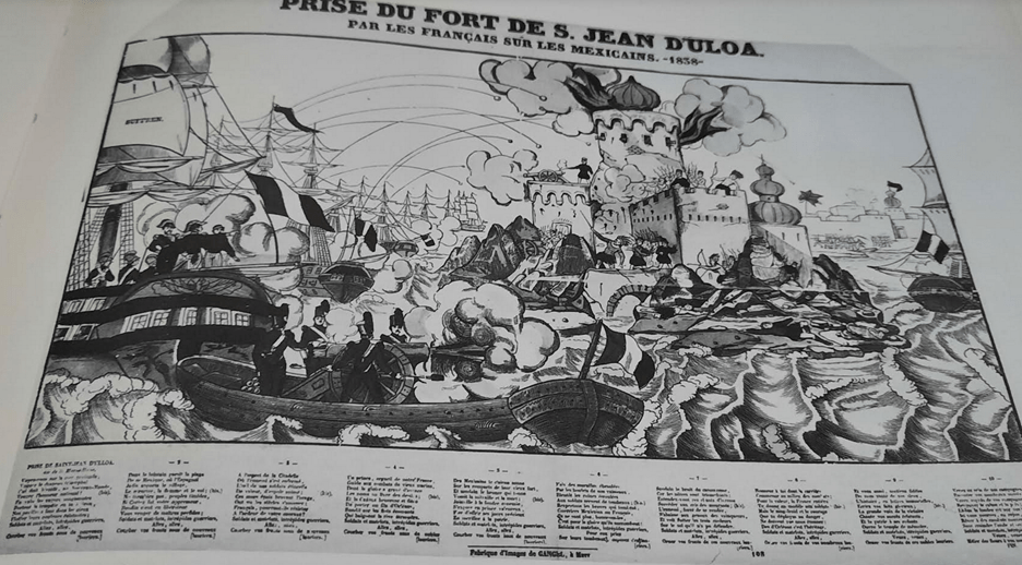 •En novembre 1838 l’Amiral Baudin était à la Vera Cruz , Le fort de St Jean d’ Ulloa qui défendait le port fut détruit depuis la mer par l’artillerie navale .
