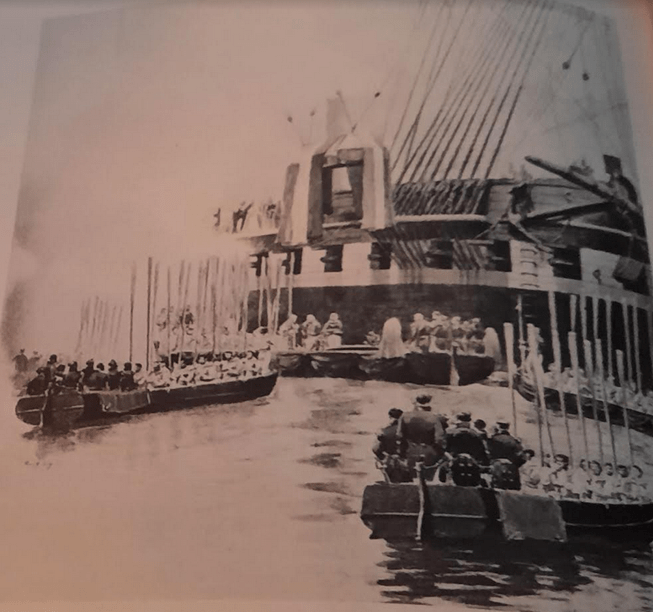 •Les cendres de l’Empereur nous étaient rendues , la Reine Victoria passait en revue l’ État Major d’un bâtiment Français .