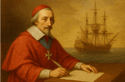 La pensée de Richelieu ne se bornait pas à la recherche de la puissance navale mais il s’intéressait aussi au commerce maritime .